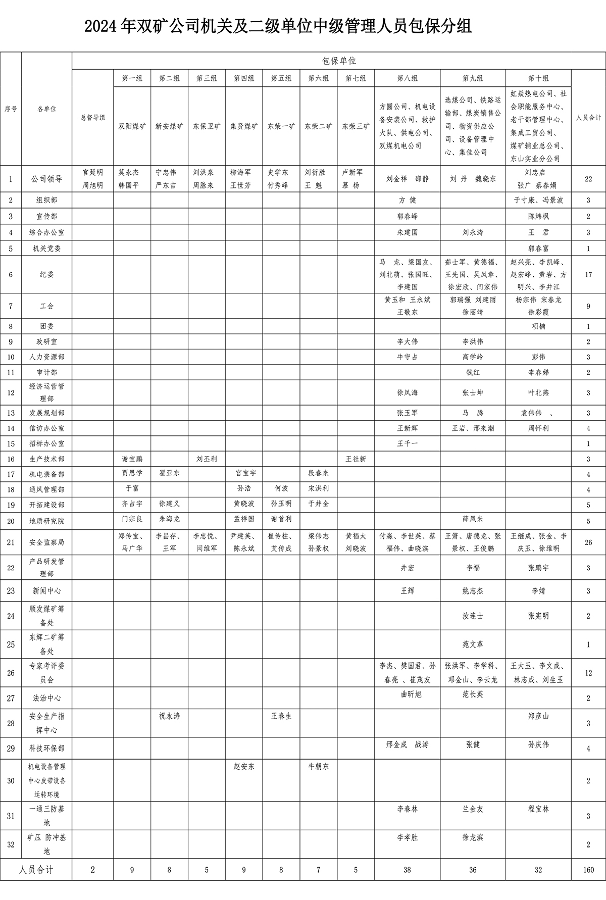 二、 2024年双矿公司机关及二级单位中级管理人员包保分组信息。