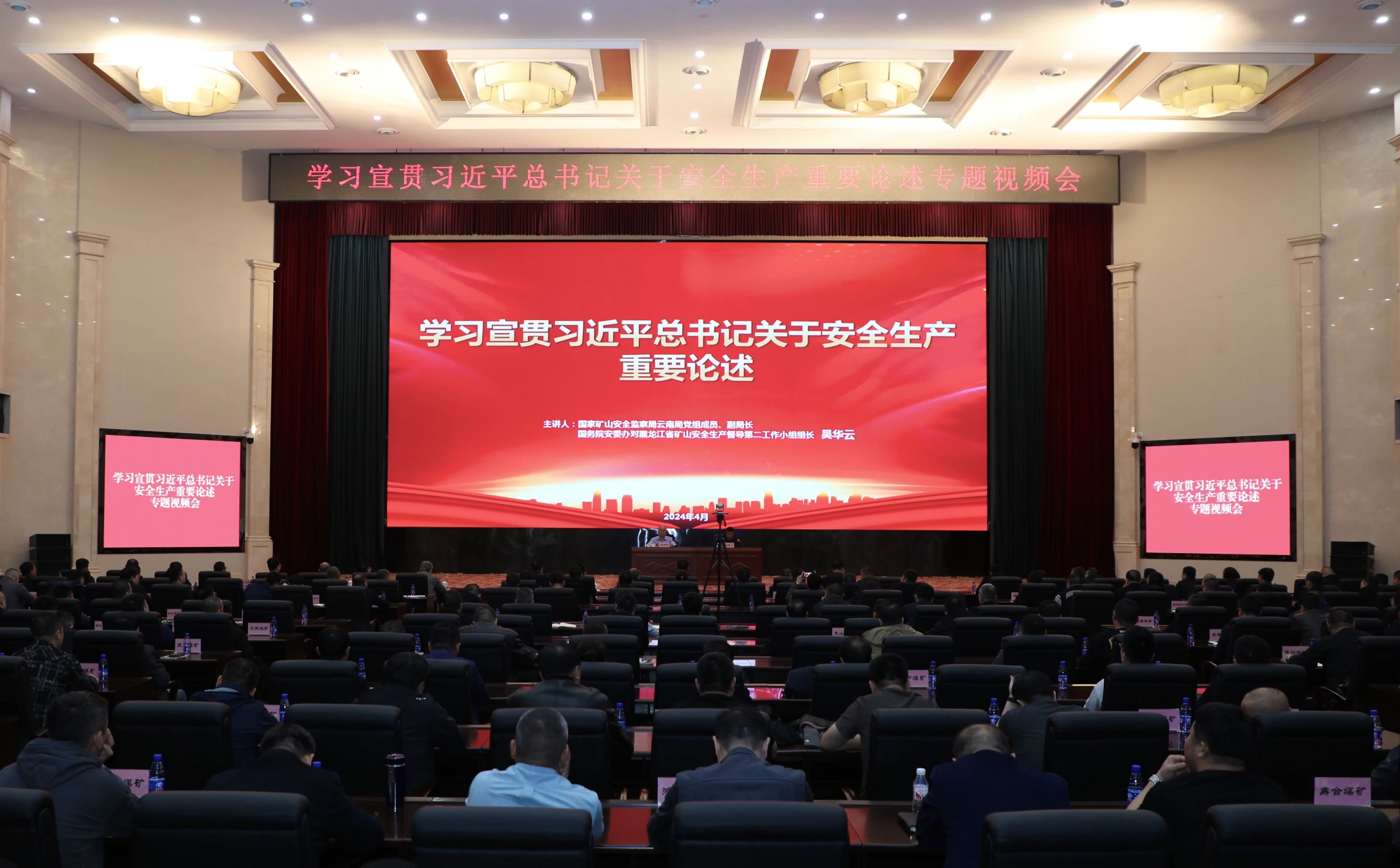 为着力解决各级领导干部和煤矿企业管理人员思想观念问题,更加透彻理解和处理好发展与安全的辩证关系,加力推动煤矿安全治理模式向事前预防转变,4月11日,国务院安委办第二督导组组长、国家矿山安全监察局云南局党组成员、副局长吴华云向我市煤矿领域党员干部宣讲习近平总书记关于安全生产重要论述和重要指示批示精神。市政府副秘书长、市煤管局局长吴恒主持宣讲会并提出要求。国家矿山安全监察局黑龙江局监察执法二处、市煤管局、市有关部门及有关单位负责人,双矿公司领导宫延明、周旭明、卢新军、刘衍胜、史学东、宁忠伟、刘洪泉、刘丹、莫永杰、柳海军、蔡春娟,公司副总师,公司机关各部室及各单位副科级以上人员近1120人分别在主分会场聆听了宣讲。